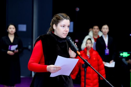 北京俄罗斯文化中心俄语与体育部主任阿廖什基纳·朱莉娅·弗拉基米罗夫娜致开幕辞