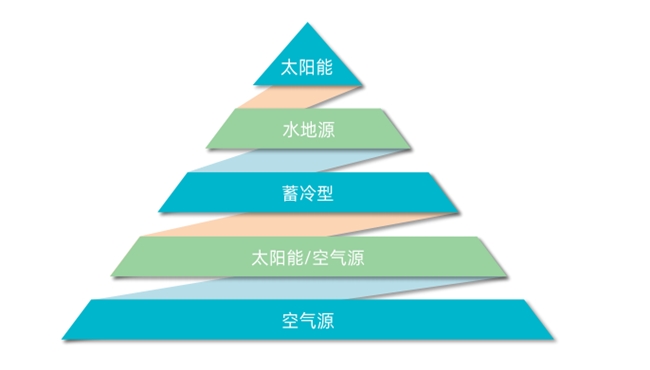 水地源热泵中央空调系统利用地下水、土壤或地表水等清洁能源,运行高效无污染,是住宅小区、联排别墅、独栋别墅等民用建筑,以及酒店、办公楼、学校、商场等商用建筑的理想选择。蓄冷型中央空调系统(冰蓄冷)适用于全年冷负荷较大、时段集中的场合,如体育馆、影剧院、数据中心、药厂等,可有效平衡电网高峰时段用电负荷。太阳能 + 空气源热泵 + 生活热水系统则利用太阳能资源,尤其适配同时需求空调及热水的用户,以及太阳能资源相对充沛的北方寒冷地区。