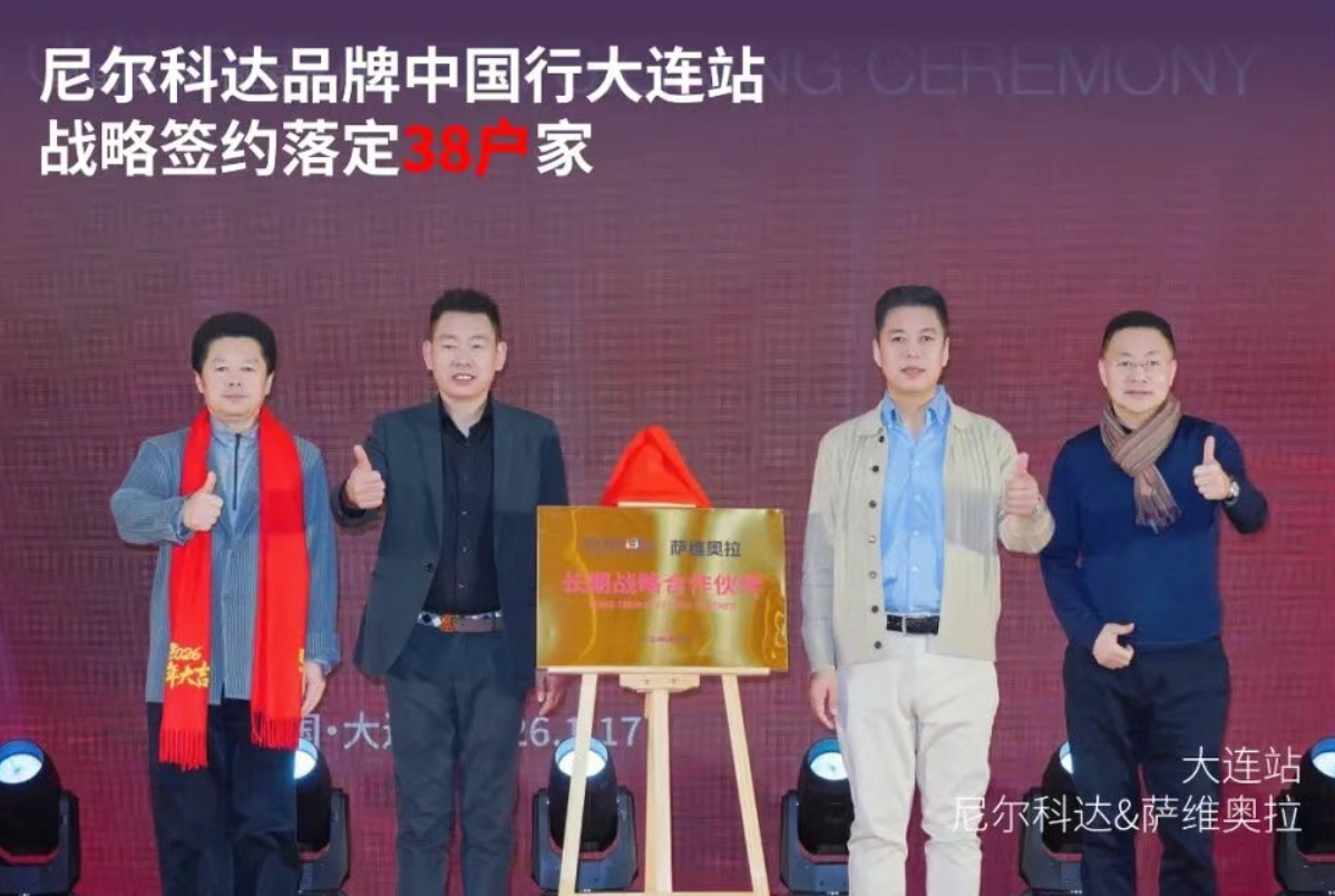 尼尔科达NEARKUDOS,2026年度首场 “1357 中国行” 系列活动在大连圆满落幕,这场以 “谋胜商战・破局增长” 为主题的行业盛会,不仅吸引了 38 家核心合作伙伴现场签约,更标志着品牌全国性战略布局正在全国加速推进。作为中国人造板生产龙头企业,尼尔科达依托铁岭、昌图、丹东、沈阳四大生产基地与家居产业园,构建起辐射全国的产能网络,总占地面积超 2000 亩,年产能突破 70 亿元,以硬核生产实力支撑全域市场拓展。此次大连站活动的成功举办,既是品牌深耕东北市场的重要举措,更是 “1357 中国行” 全国巡回战略的关键一环,后续将陆续登陆北京、上海、广州等核心城市,持续扩大品牌全国声量。