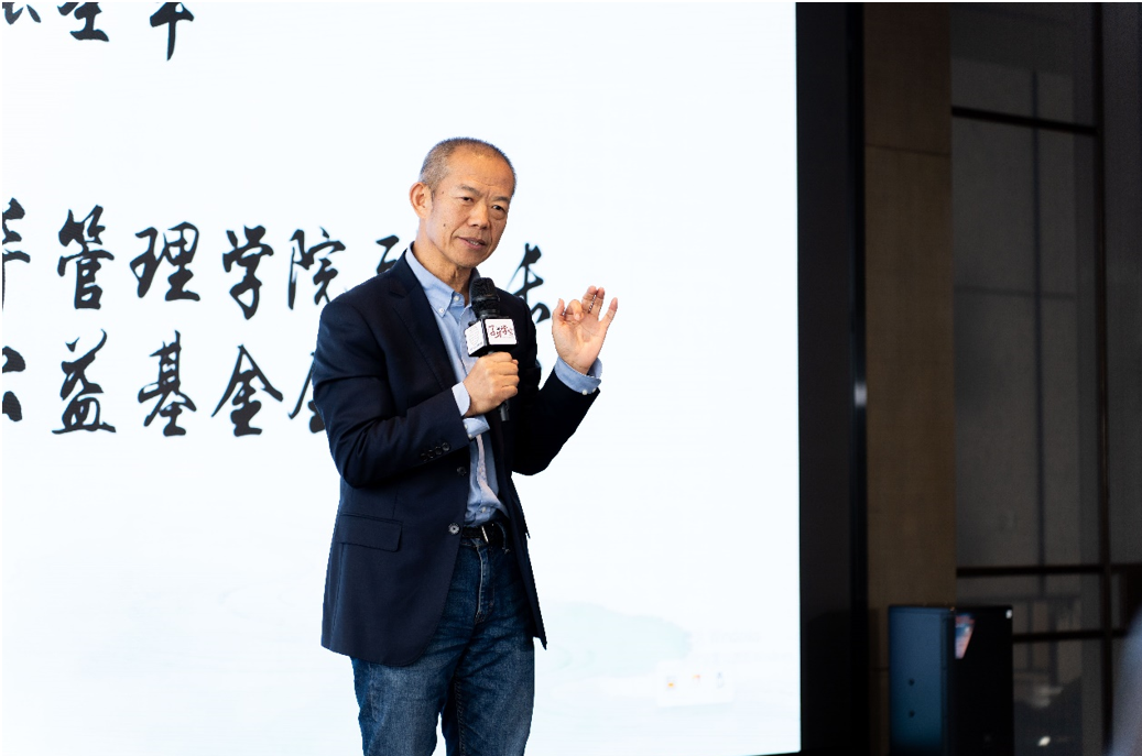 主旨发言环节,张圣平院长分享了北京益行者公益基金会联合发起的“知心伙伴”艺术疗愈人才培养项目的有关情况,他提到:要有光,要成为一道光,照亮更多人。