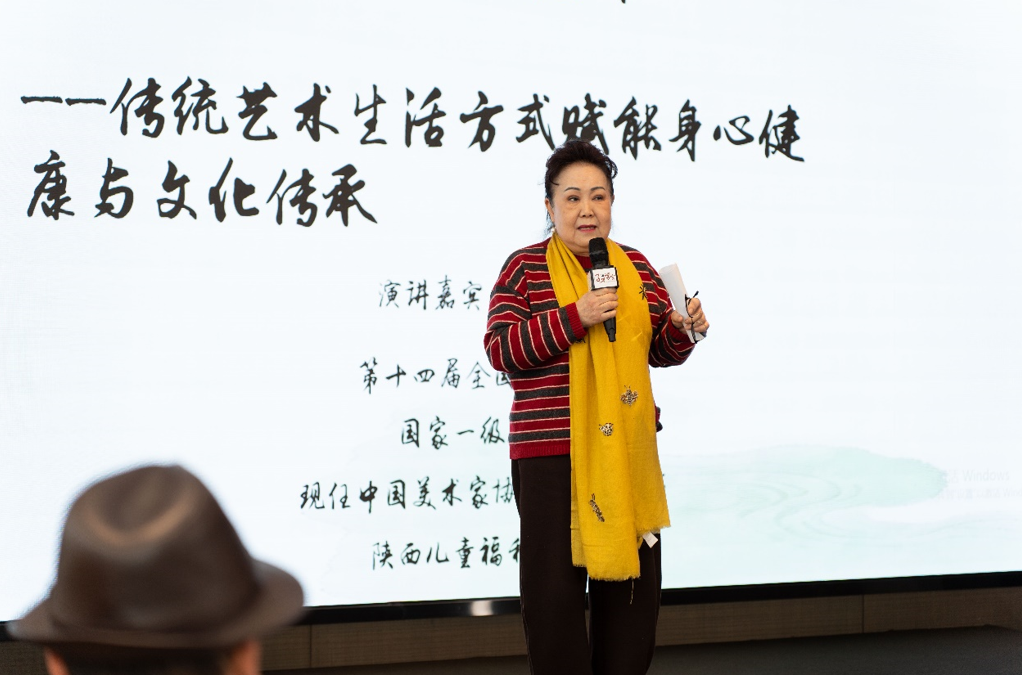 宋亚平会长分享了“以艺润心,以美润身的传统艺术生活方式赋能身心健康的个人实践”,她提到:书画的美愈在用心注入情感的时候,是有机会起到意想不到增强身心能量的作用。