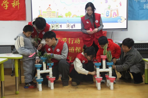 最后,实践团组织了“我是小园丁”绿植栽培体验活动。每位孩子在志愿者的指导下,亲手完成松土、播种、浇水等步骤,在小型花盆中种下树苗种子。队员们同步讲解植物生长的基础知识,帮助孩子们建立照料生命的初步概念。
