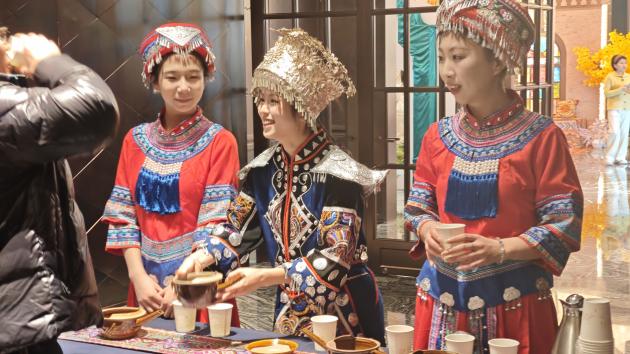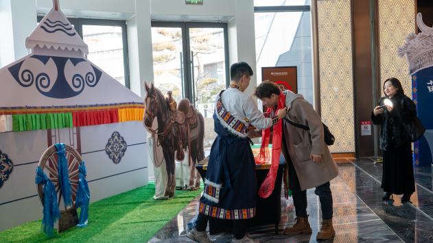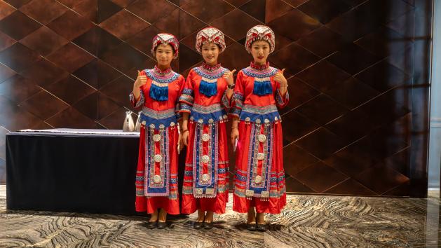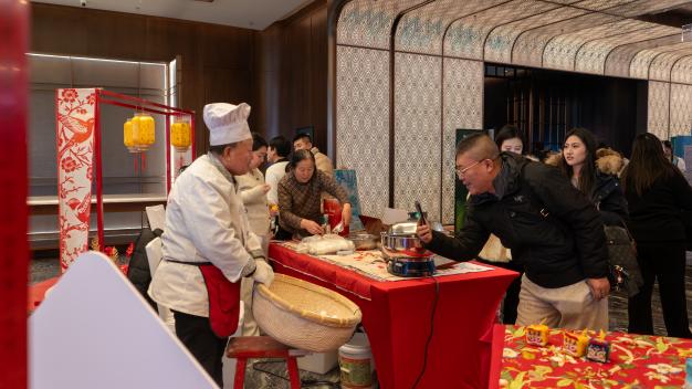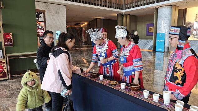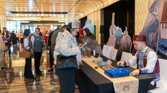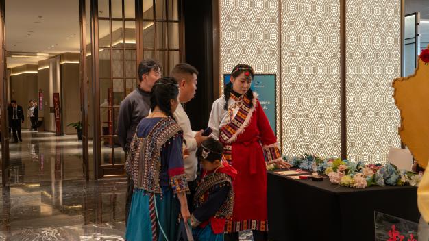 活动紧贴“中华民族一家亲”的深厚感情为主线,在传统新年氛围中融入多元民族文化元素,打造一场视觉、听觉与体验全方位沉浸的盛宴。特别设计了以中国地图为原型的花艺签到环节,到店宾客共同完成一幅地图造型完美点题。互动游乐区设置了壮、回、苗、傣、维吾尔、藏、蒙古、汉族等8大民族的文化互动、手作体验、特色美食试吃、民族传统节目快闪等环节。为呈现沉浸式文化体验,现场特备民族特色盛装,更邀请专业妆造团队为宾客提供精美的服化体验,吸引宾客纷纷驻足互动。专业人像跟拍团队,担任“站姐”一角,随机抓取宾客互动精彩瞬间。酒店服务团队也全部以民族妆造出现在客人眼前,全程提供贴心引导与协助,确保每位宾客在温馨有序的氛围中融入活动。