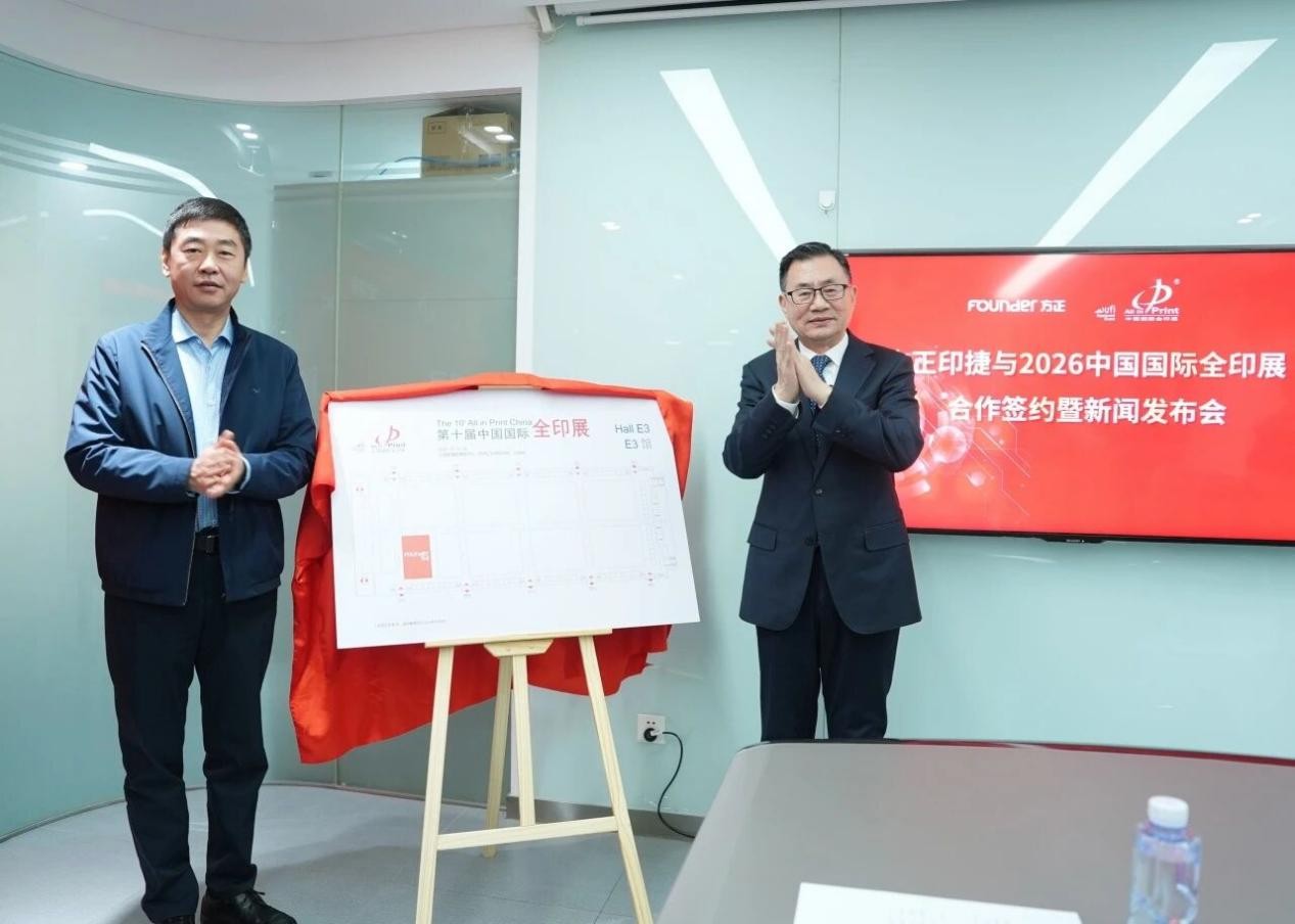 1月26日,北京北大方正电子有限公司(以下简称“方正电子”)旗下中文印艺与解决方案提供商——北京方正印捷数码技术有限公司与中国印刷技术协会在京举行第十届中国国际全印展(THE 10th ALL IN PRINT CHINA)参展展区揭幕仪式,这标志着方正印捷将正式进驻今年10月12-16日在上海新国际博览中心举行的第十届中国国际全印展的E3馆——数字智能示范馆,双方将携手把E3馆打造成数字印刷标杆展区。