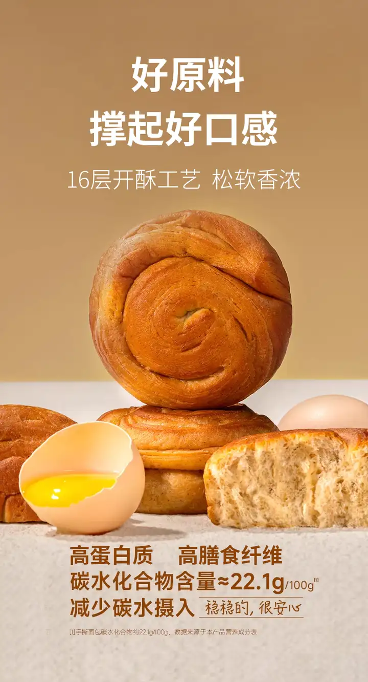 本次获奖的糖友厨房低GI手撕面包(GI值≈31),亦采用了品牌这一独有的“稳稳粉”配方。搭配燕麦β-葡聚糖(益生元)、鸡蛋、牛奶及16层开酥工艺,蛋奶香浓,松软耐撕。评审团在评语中特别提到:“这款面包在健康的前提下,依然呈现出如此平衡、丰富且令人愉悦的风味层次,实属不易。”