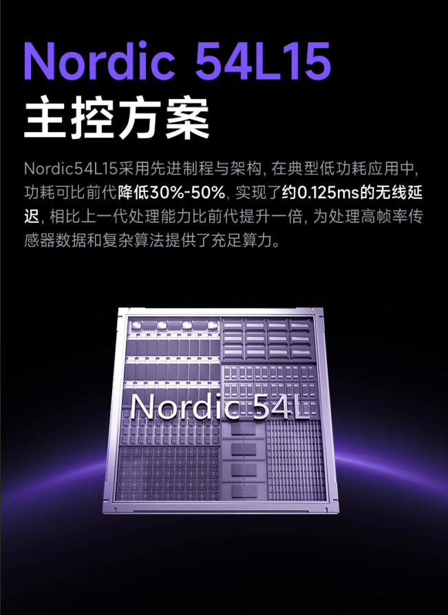 Akko灵动V9 Ultra 搭载 Nordic 54L15 电竞级旗舰核心。该核心采用先进制程与架构,能效比大幅提升,为处理高帧率传感器数据与复杂算法提供充沛算力保障。由此带来惊人的响应速度:有线模式下按键延迟最快至0.13ms,无线模式下亦可达0.21ms,确保每一次点击都瞬时触发,决胜于分毫之间。