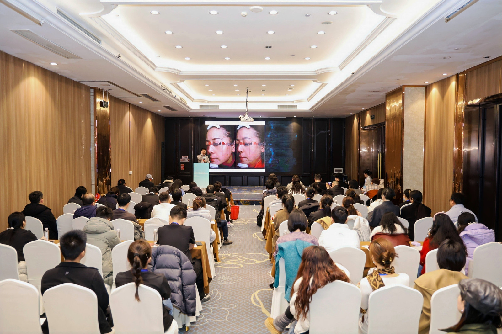 注射会场以“从解剖到美学的实战闭环”为核心。杨珏萍、曹思佳、朱玲燕等专家构建了从基础解剖到高阶美学的完整教学体系。课程聚焦玻尿酸、胶原蛋白等材料的精准应用、“童颜提升”技法,行业资深专家将现场拆解面部精雕的黄金比例设计、不同部位注射的层次把控与风险规避,重磅分享微整形并发症的应急处理全流程方案。更有真人案例视频现场演示讲解,从进针角度到剂量把控全程精细化呈现,助力参会者直观掌握注射美容进阶技巧,实现从“精准注射”到“艺术塑美”的跨越升级。