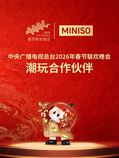 1月29日,名创优品(MINISO)正式宣布成为中央广播电视总台《2026年春节联欢晚会》潮玩合作伙伴春晚作为全球华人庆祝春节重要的文化符号,是连接五湖四海、凝...