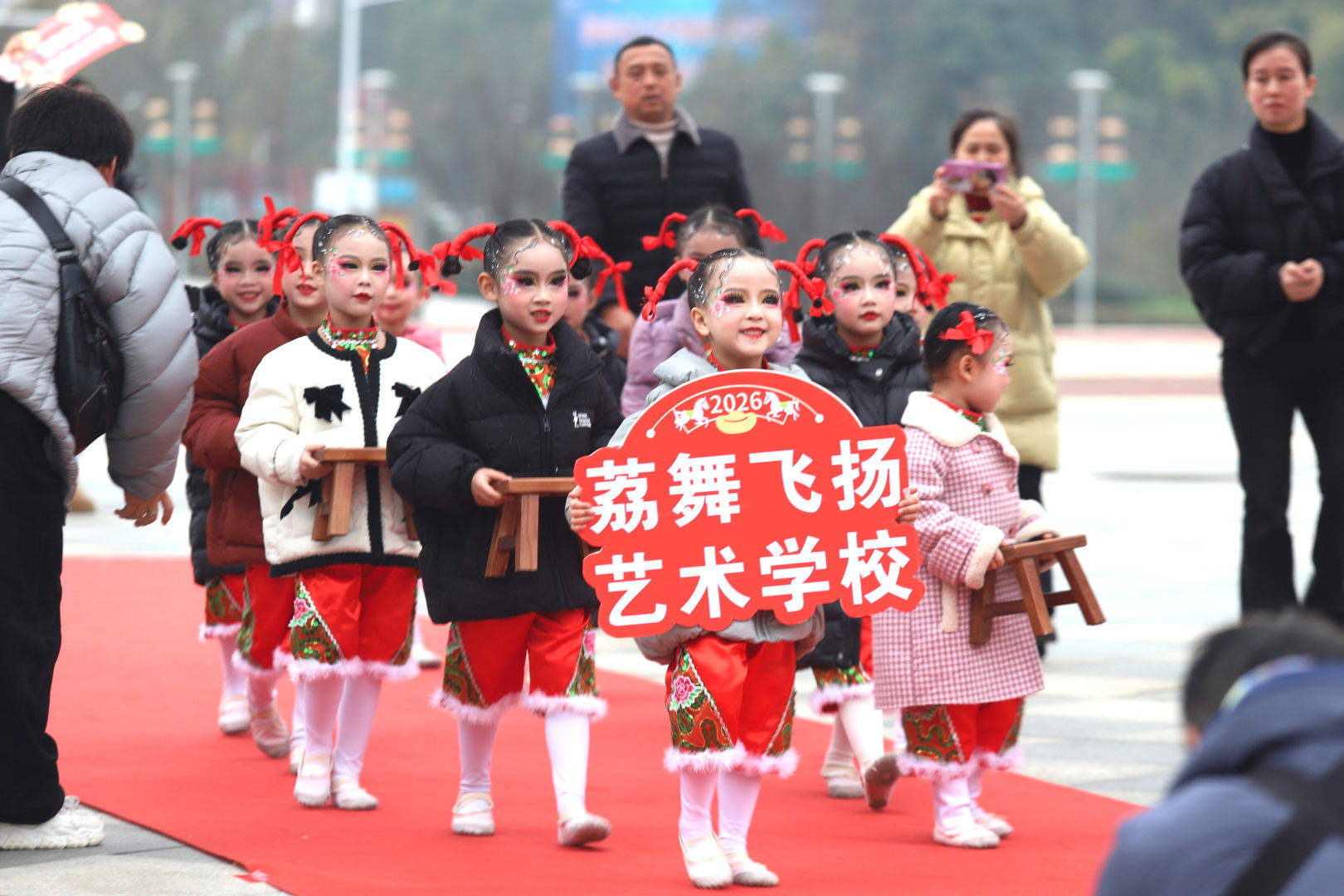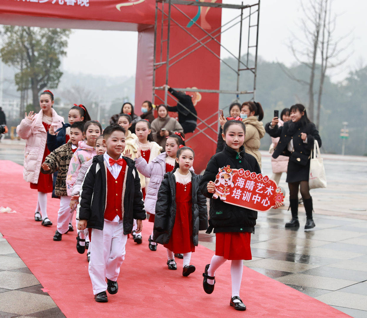 晚会在荔舞飞扬舞蹈学校带来的开场舞《中国红》中拉开帷幕。11名小舞者身着红衣,手持红绸,以欢快的舞步点燃全场热情。紧接着,荔舞飞扬艺术培训学校15名学员演绎的《我的醒狮梦》将气氛推向高潮,醒狮的灵动与少年的活力相映成趣,赢得观众阵阵掌声。