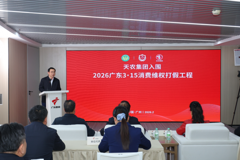 为深入推进消费者权益保护,营造安全诚信的消费环境,2026年2月1日,“2026广东3·15消费维权打假工程”入围约仪式在广东广播电视台举行。天农集团凭借在清远鸡产业链建设、食品安全管理和消费责任实践方面的持续投入,成功入围该工程签约企业行列。