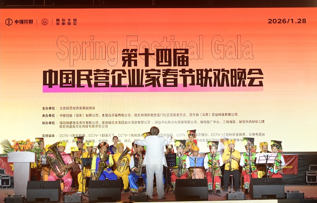 2026年1月28日晚8时,第十四届《中国民营企业家春节联欢晚会》主会场在在祖国西南开放前沿的云南省瑞丽市姐告国门大道盛大启幕,分会场同时在祖国的最南端的海南省举行。本届晚会以“民企春晚民企办·办好春晚为民企”为核心主题,由企业家群体自发筹办、自主演绎,旨在致敬民营经济奋斗精神,展现新时代企业家风貌,凝聚发展共识。晚会总时长150分钟,现场气氛热烈,精彩纷呈。