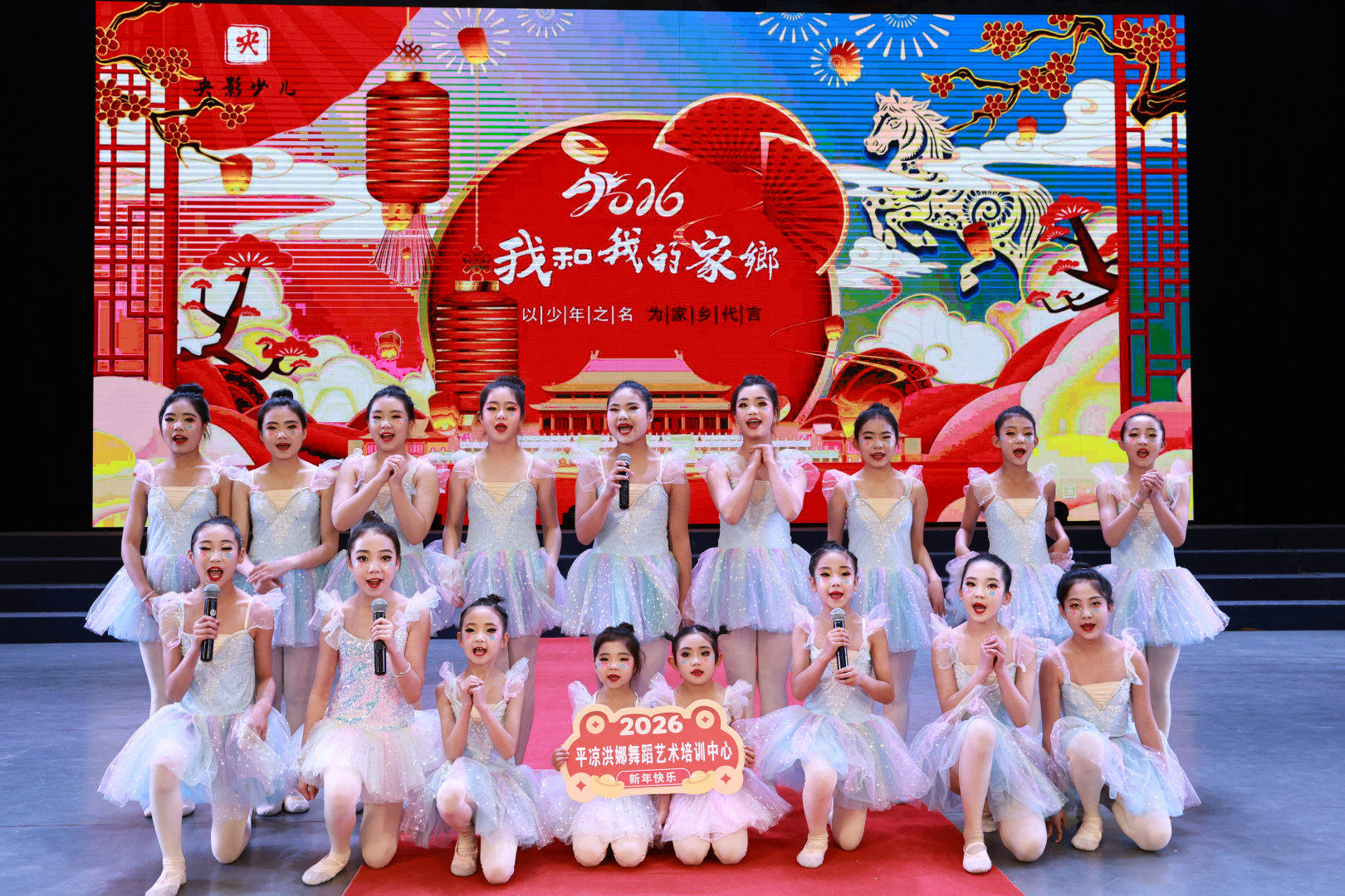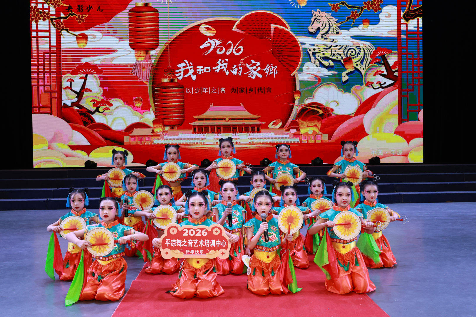晚会以四位小主持人马若曦、兰星宇、杨扬、魏岂伊的欢快登场拉开序幕,轻快喜庆的背景音乐瞬间点燃全场氛围。开场环节,杨扬率先致谢平凉爱芭翎舞蹈艺术学校带来的开场舞《记得宋时月》,随后六位小主持人依次亮相,用流利而充满童真的语言串联全场。他们以“北国的雪原到南方的椰林”“东海的浪花到西部的草原”为引,勾勒出中华大地的壮美画卷,并共同祝福观众新春快乐,正式开启这场以“家乡”为主题的欢乐盛宴。