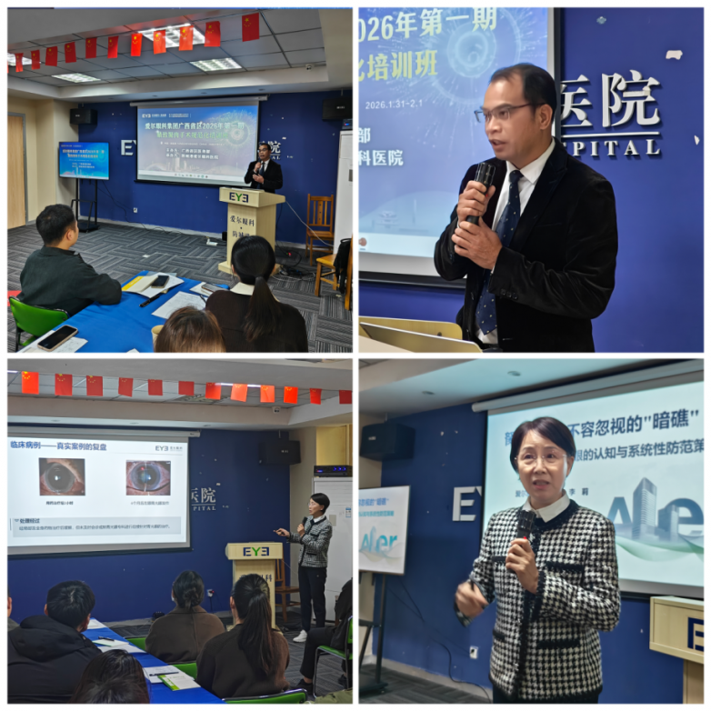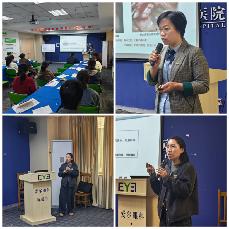 2月1日上午,培训继续推进。防城港爱尔眼科医院视光科副主任安宏梅讲述《术中情况及并发症的处理》,提升学员应对手术突发状况的能力。屈光科主任麦秋萍讲解《翼状胬肉术后患者管理》,涵盖随访、康复及患者教育体系。