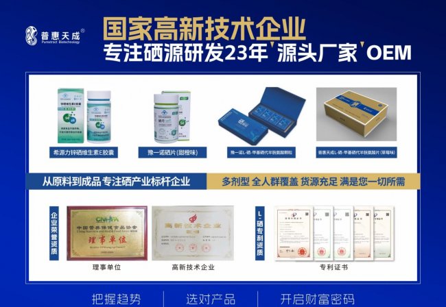 深耕行业多年,普惠天成已构建起从研发、生产到销售、服务的全产业链布局,成为国内硒产业领域的领军企业,更凭借L-硒-甲基硒代半胱氨酸的技术突破,筑牢产品核心竞争力,精准匹配社区团长会销“刚需、靠谱、易推广”的核心诉求。作为国内首家实现L-硒-甲基硒代半胱氨酸原料量产的高新技术企业,普惠天成的L硒甲基硒代半胱氨酸产品搭载专利提纯技术,原料纯度高达99.7%,远超国家标准,硒含量波动控制在±0.5%以内,显著优于行业平均水平,品质稳定可追溯,便于团长向社区居民建立信任、讲解推广。相较于传统有机硒,其生物可利用度突破90%,无蓄积毒性,适配中老年、青少年、职场人群等社区全年龄段需求,更推出胶囊、片剂、风味制剂等多剂型产品,兼顾中老年吞咽便捷性与全家口感偏好,完美适配社区会销面对面沟通、体验式推广的场景化需求。