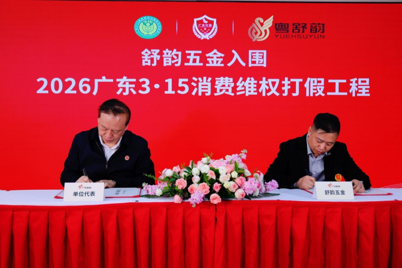 为深入推进消费者权益保护,营造安全诚信的消费环境,2026年2月3日,以“强维权、优环境、促消费”为主题的“2026广东3·15消费维权打假工程”入围签约仪式在广东广播电视台举行。长期专注于五金产品研发与制造的舒韵五金,凭借其数十年来对产品品质的严苛追求、符合国际标准的工艺水平以及始终坚持的诚信服务体系,成功入围。这标志着其在质量管控、消费者权益保护及企业社会责任履行方面,获得了省级权威活动平台的认可。