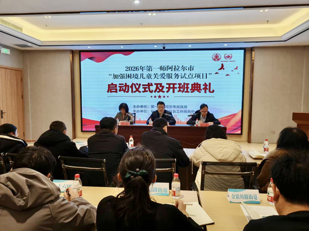 2026年1月26日,第一师阿拉尔市儿童关爱服务能力提升培训班开班暨2026年“加强困境儿童关爱服务试点项目”启动仪式在维也纳3好酒店举行。各团镇(乡)、街道民政分管领导、儿童督导员、儿童主任及社工代表共76人齐聚,标志着师市困境儿童关爱服务从基础夯实向关爱提升转型。