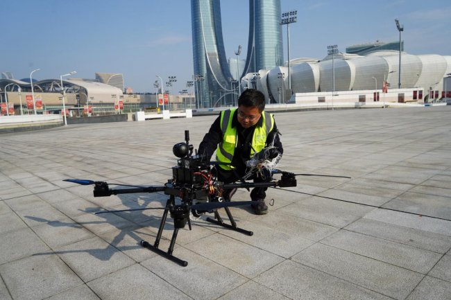 在杭州奥体中心的验证现场,“安保无人机”凌空捕获“黑飞”无人机