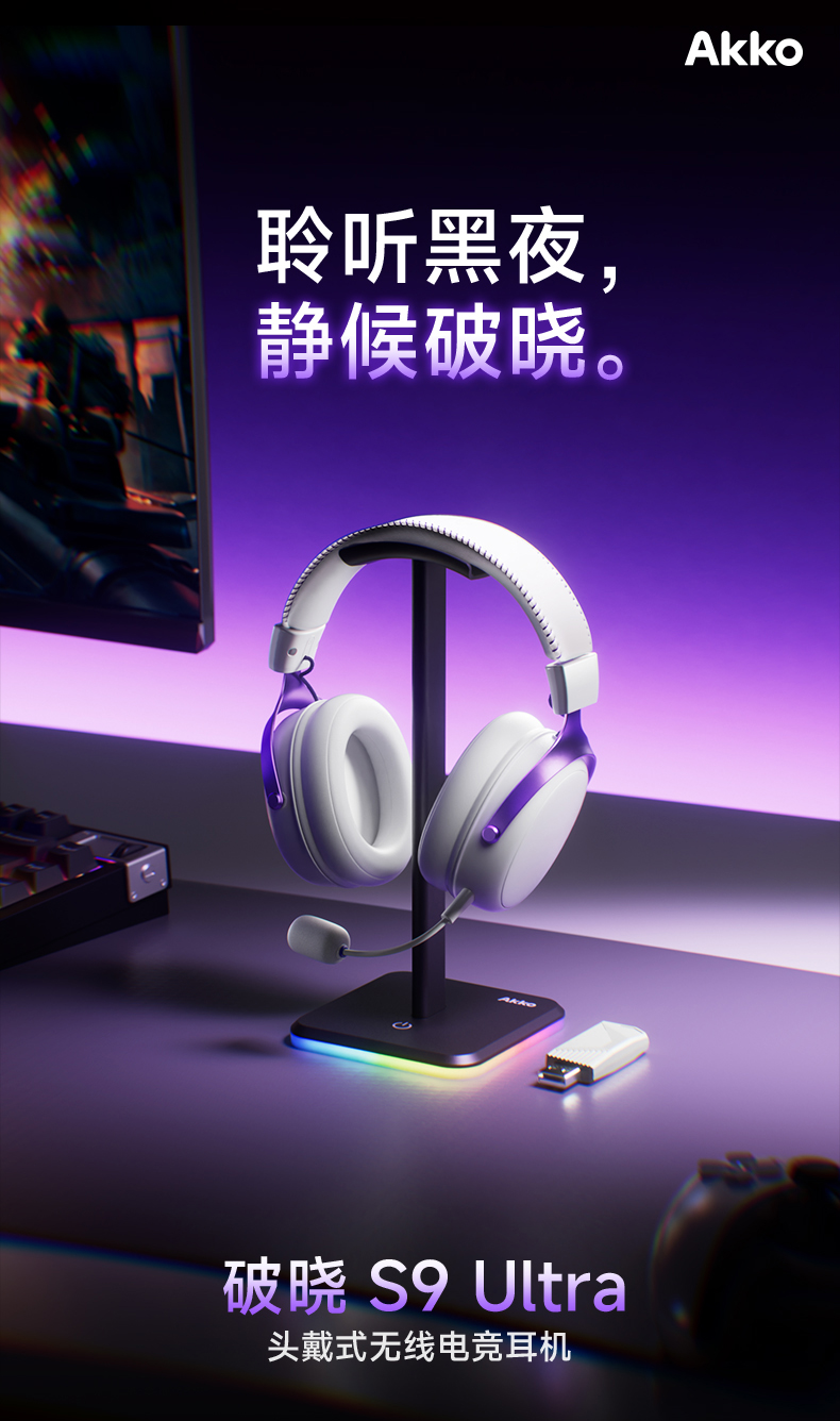 这一切的瓶颈,将在 2026年2月9日20:00,被一道新的“声波”打破。Akko「破晓S9 Ultra」四模电竞耳机,它不只是一副耳机,更像是一位为你的听觉战场量身定制的“侦察兵”,它的使命是:让每一次聆听,都成为精准的洞察。