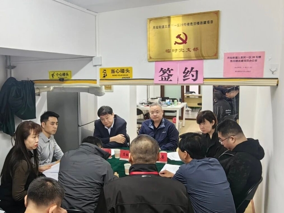 居民工作阶段是项目推进的关键,天恒集团以精准服务撬动民心共识,创造了危旧楼改建领域的效率奇迹。在“三征询”环节,创新采用“党建引领+分层沟通+精准解读”工作法,成立临时党支部,组建由党员先锋、攻坚骨干、社区工作者、设计师组成的宣讲专班,按楼栋划分责任片区,逐户上门沟通。针对老年、行动不便等特殊群体,提供“一对一”上门讲解服务,同步搭建线上线下沟通平台,动态优化方案,仅用28天便完成改建意向、实施方案、设计方案“三征询”工作。签约环节的创新举措更是直击痛点、成效斐然,构建“多方联动+一站式服务+金融创新”三维保障体系,联合银行机构全国首创“带押改建”金融模式与个人住房改建贷款,成功破解经济困难家庭参与改建难题;在项目现场设立综合服务点,实现产权核查、协议解读、法律咨询、贷款办理等服务“一站式”办结。通过“每日调度、逐户销项”机制,安排专人精准解决居民实际困难,最终以77天100%签约的成绩,刷新核心区危旧楼改建签约效率纪录,全程实现零投诉、零纠纷、零上访。