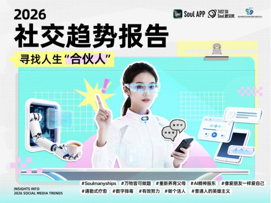 社交平台Soul App已连续三年发布年度社交趋势报告,从2024年“在社交中找寻自我坐标”,到2025年“悦己时代,为世界赋魅”,再到2026年“寻找人生‘合伙人’”,完整记录了Z世代从自我探索到系统共建的成熟蜕变。近日,Soul旗下Just So Soul研究院联合复旦大学相关研究团队发布的《2026年社交趋势报告》,基于9812份有效问卷与平台海量多模态内容分析,不仅延续了这一观察脉络,更以十大关键词勾勒出Z世代社交的最新图景,成为洞察青年精神轨迹的重要窗口。