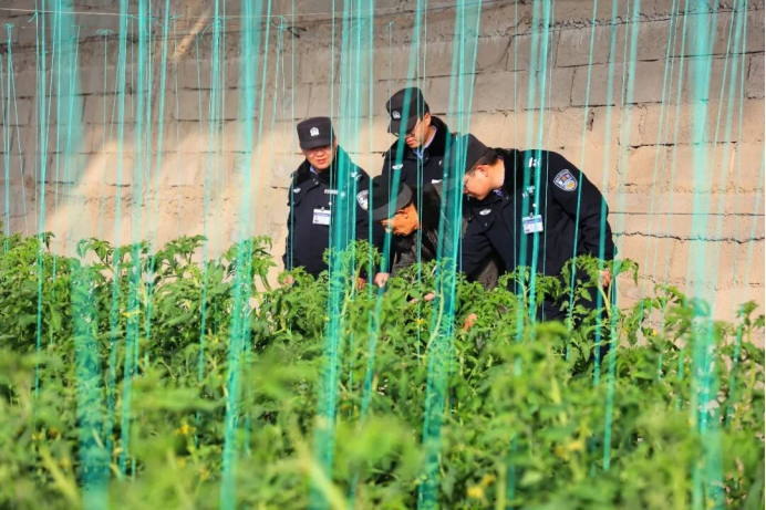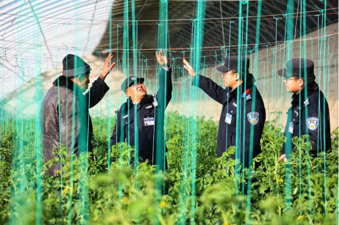 在金塔县东坝镇的广袤大地上,一座座银光熠熠的蔬菜大棚整齐排列,勾勒出现代农业的生机图景。棚内暖意融融,一株株西红柿秧苗青翠欲滴,藤蔓正待打条整枝,孕育着丰收的希望。在这片蓬勃发展的热土上,金塔县公安局东坝派出所的民辅警们深入践行“田园警务”,将一抹抹忙碌的“警察蓝”融入生机盎然的“蔬菜绿”中,为设施农业的平安与发展保驾护航。