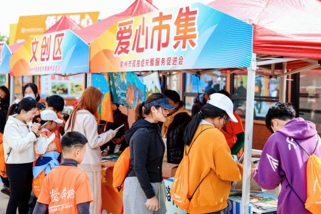 终点区设置“侨爱联心”公益市集、“爱的回响”祈福墙与完赛纪念墙。“星星的礼物”义卖区内,孤独症儿童创作的手工艺品、画作衍生品吸引众多爱心人士驻足。现场还设有“星禾有爱”公益展示区、中医健康咨询站等,融合公益倡导、文化体验与健康服务于一体。