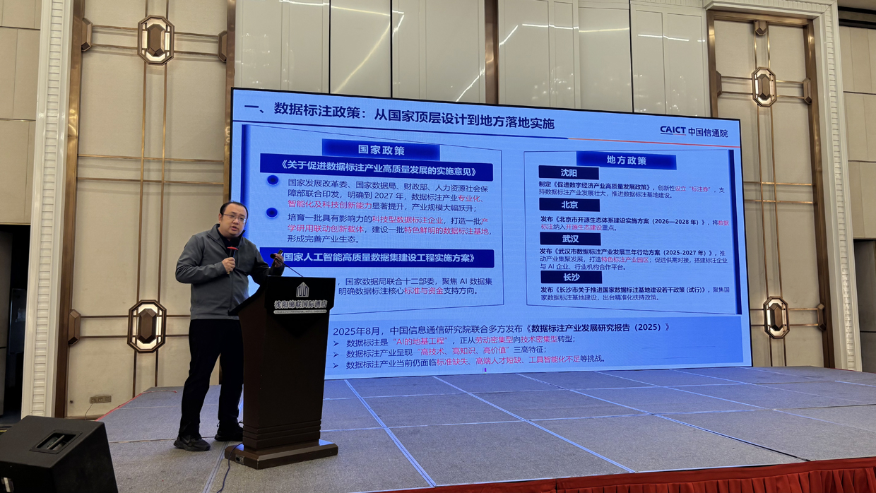 2026 年 2月 6 日,由沈阳市数据局、中国信息通信研究院人工智能研究所、沈阳市数字经济企业协会及成都传媒(成都)有限公司共同主办的“2026年中国信通院人工智能高质量数据集炼金工坊生态行暨沈阳市数据标注产业培训大会”在沈阳成功召开。本次大会旨在培育地方数据标注产业生态,助力“智改数转”行动计划实施,为加快推动沈阳市数据标注产业高质量发展注入新动能。