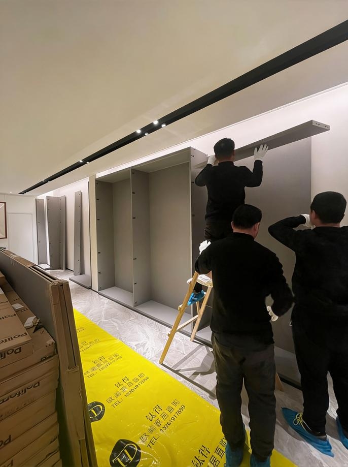 白手套安装(White Glove Delivery): 货物到场后,安装团队会进行现场保护。安装过程中全程佩戴白手套,避免手汗污损名贵的Eco Skin或丝绒面料。安装完成后,不仅带走所有包装垃圾,还会进行细致的清洁和五金调试,确保交付即使用的完美状态。