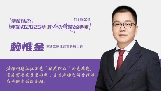 2025年,“律新社2025年度风云榜:劳动法律师20佳”发布,赖惟金凭借丰富实务经验与行业影响力荣登榜单。近日,律新社深入对话赖惟金,共同探讨劳动法律师的专业智慧及品牌建设之道。