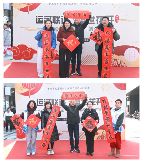 2月9日,为推动优质文化资源直达基层,由通州区文化和旅游局举办的“运河联语 盛世花开”新春非遗文化雅集活动在宋庄镇拉开帷幕。活动以“文艺汇演+非遗体验+新春送福”相结合的形式,为社区居民带来一场充满文化韵味与新春气息的文化之约,让艺术赋美群众文化生活。北京市文化和旅游局公共服务处处长赵江、副处长潘荣与居民一起共迎新春。