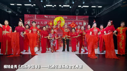 代际融合是本次春晚的核心亮点,多组节目采用老少同台的表演形式,婉莹艺术团的二声部合唱《如愿》温柔且坚定,天津市成奥艺术团携手非遗传承人张金芳与儿童组带来的模特走秀,融合潮流配乐与中国风元素,传统与时尚碰撞出别样魅力;红桥区民乐联合艺术团的《欢乐中国年》模特走秀将欢乐氛围推向高潮,老人们的优雅与孩子们的活泼相映成趣,完美诠释了“老少同乐”的主题。晚会还特别设置陶煦养老照护中心分会场,苗苗义工的孩子们用歌声与舞蹈为养老院的老人们送去新春祝福,分会场的温馨画面让爱与温暖跨越空间,直抵人心。