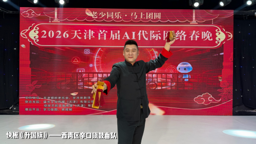 北方小年之际,由天津银龄老乐会、岁月新剧场主办,盛市文化传媒(天津)有限公司、绽放艺彩文化传媒(天津)有限公司、春蕾志愿服务队、春蕾苗苗义工、先锋少年、苗苗艺术团等单位联合发起的2026天津首届AI代际网络春晚圆满启幕。这场以“老少同乐 马上团圆”为主题的新春盛宴,以AI为桥、以艺术为媒,打破年龄界限,融合传统与潮流,为北方小年送上了一份满含津味与温情的新春祝福。