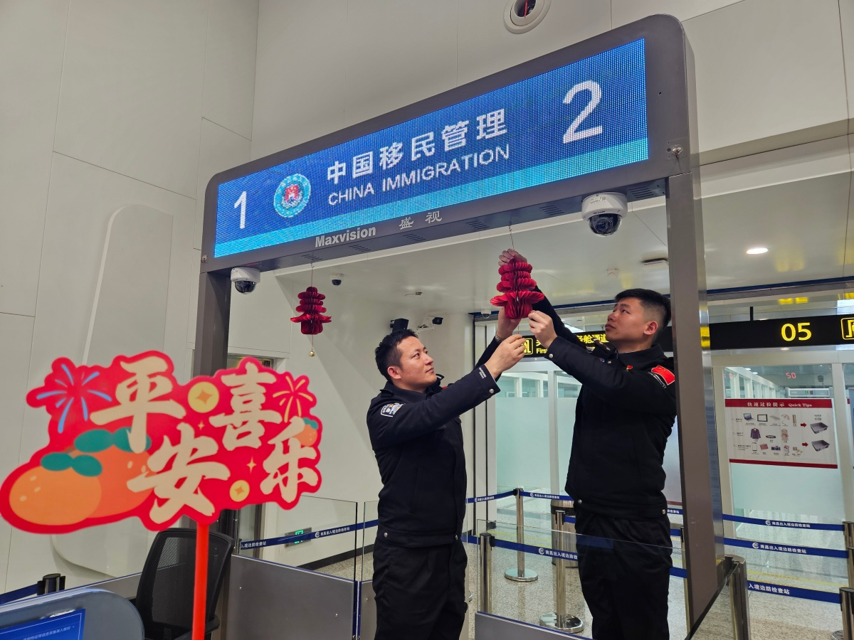 此外,为了进一步营造浓厚的国门年味,年前,该站民警精心挑选装饰物料,利用勤务间隙亲手布置,灯笼高挂、中国结垂悬,生肖贴画与新春祝福立牌错落摆放,让庄严的国门平添了几分家的温馨。“太喜庆了,没想到出国也能感受到这么浓的年味儿!”不少旅客一迈入执勤现场查验区便赞不绝口。“我们装扮执勤现场,点亮的不仅是口岸,更是坚守岗位、传递祝福的初心。”该站执勤三队教导员喻文华道出了大家的心声。