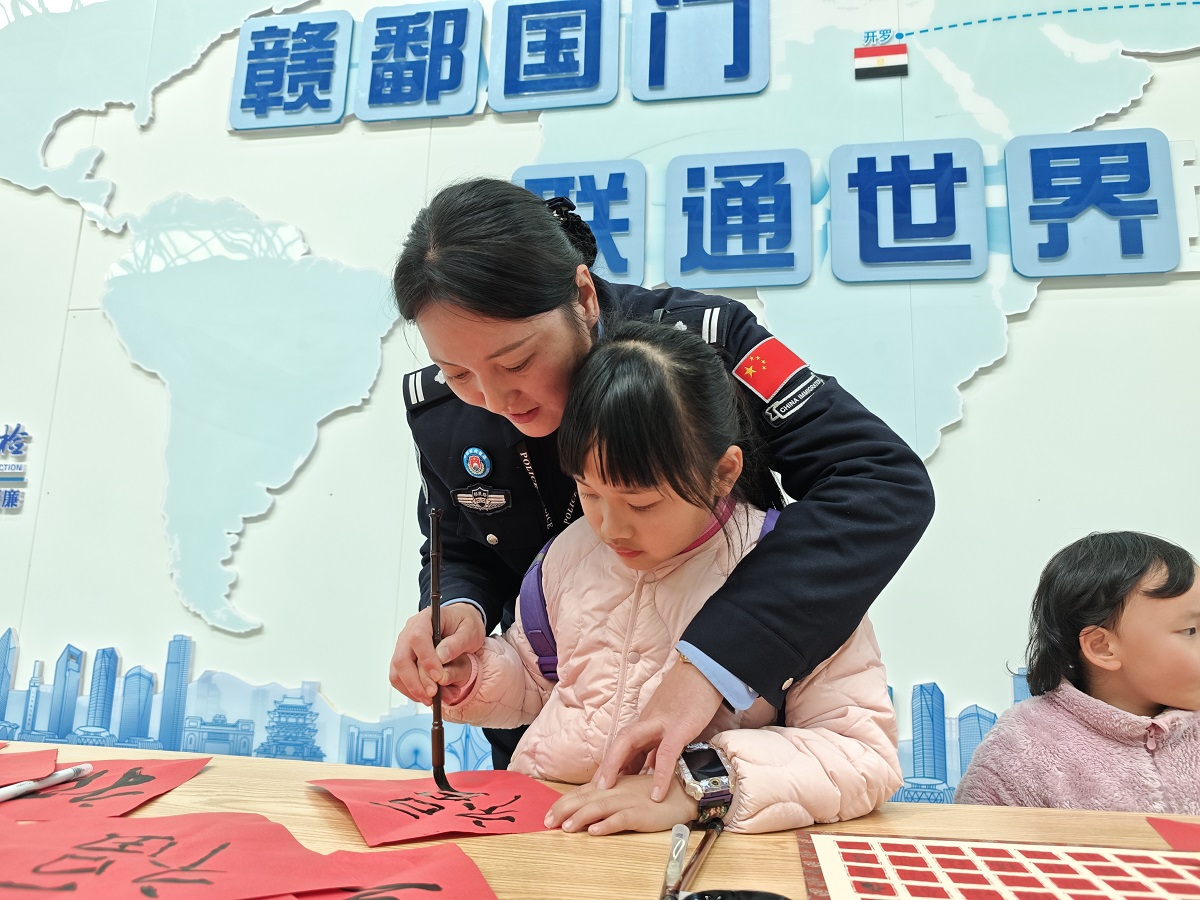 与此同时,该站还积极在执勤现场开展迎新春主题活动,邀请过往旅客提笔写“福”。“带着福气出国门,平平安安回家来。”执勤四队副队长黄琦为旅客送上新春祝福。不少外国友人驻足参与,亲手写下“福”字,纷纷点赞:“Chinese police, very warm!”,让国门温情跨越国界、传递四方。来自马来西亚的李先生还主动向执勤民警分享自己观看南昌新年烟花晚会的激动之情:“没想到你们的烟花秀如此精彩,这次南昌之行让我印象深刻,我已经在计划下次带家人再来深度游览啦。”