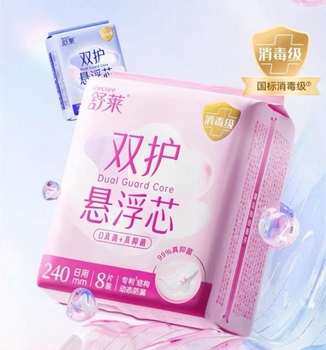 从 1998 年诞生第一片卫生巾,到如今以双护悬浮芯系列卫生巾深耕女性经期护理领域、持续升级产品体验,舒莱始终坚守 “专注女性全阶段健康护理需求,专研女性全阶段轻养护健康产品” 的初心。这款集消毒级安全、专利防漏、裸感舒适于一体的卫生巾,是舒莱经期护理产品的品质代表,更以硬核实力筑牢经期护理的 “安心标准”,让每一位女性都能轻松、自在、健康地度过生理期。