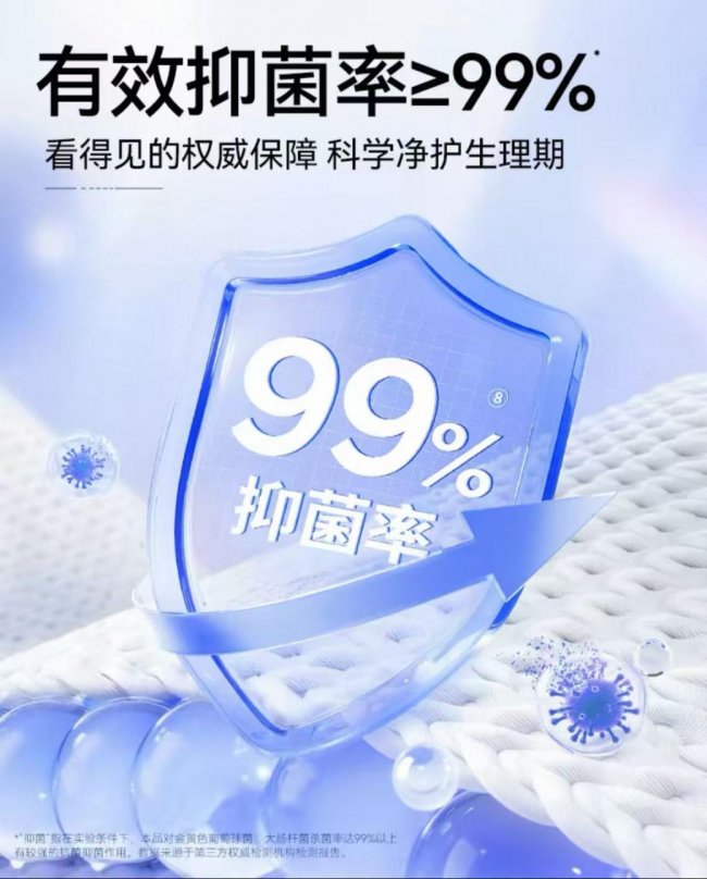 除了源头级的消毒安全保障,该系列更精准直击经期细菌滋生痛点,表层采用抑菌表层材质,,在静置实验条件下对金黄色葡萄球菌、大肠杆菌的抑菌率达99%以上。这种“消毒级+高抑菌率”的双重防护,能从源头减少细菌滋生与异味产生,有效缓解经期私处闷热不适、瘙痒等困扰,让女性全天保持清爽体感,切实减轻“经期安全焦虑”。值得一提的是,该系列已通过10份第三方检测报告验证,涵盖消毒级标准、抑菌性能、皮肤刺激、重金属等多个维度,安全实力有迹可循,也进一步彰显了舒莱在女性护理领域,对产品品质的严苛把控与匠心坚守。