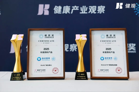 励成营养两款原料双获健观奖,核心逻辑在于精准洞察行业痛点,以技术创新提供营养原料应用解决方案 ——RiviK2®微胶囊维生素K2让“钙镁K2”的高效复合配方成为可能,Rimind PS®磷脂酰丝氨酸颗粒则打破了脑健康营养原料的应用局限。