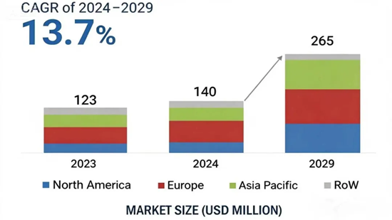 维生素K2作为“骨心双护”的关键营养素,能活化骨钙素和MGP蛋白,将血管中沉积的钙引导至骨骼,同时缓解血管钙化、改善骨质疏松,市场需求持续升温。数据显示,维生素K2市场规模预计从2024年的1.4亿美元增长到2029年的2.65亿美元,复合年增长率高达13.7%。