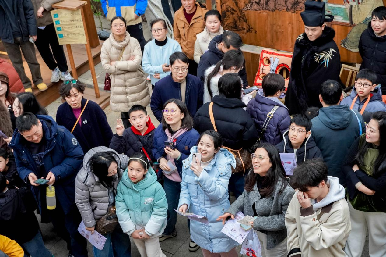 五大板块协同发力,以沉浸式体验彰显文化匠心,构成了本次活动的鲜明底色。保宁门“城开气运”开城大典,每日上演三场主题演绎,再现古婺迎宾盛景,城主开城、财神迎福的实景演绎,搭配以水袖舞、旗舞与婺剧鼓点,将宋式礼仪的庄重与新春的喜庆完美融合融为一体,尽显古婺州的豪迈与温情;金华府文庙“文庙祈福”板块以正统儒学礼仪为根基,开庙大典的三通鼓响、钟声九响,《魂穿春秋・碰撞千年孔学典籍》的时空对话,既延续了崇文重教的古城文脉,更以年轻化、趣味化的形式,让儒学文化走进大众、浸润人心。