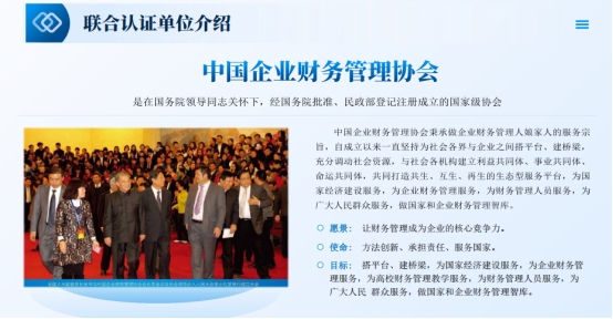 中国企业财务管理协会则是国内企业财务管理领域的重要行业组织,对我国企业的财务管理和税务管理需求有着深入的了解,结合国内财税实际需求优化认证体系,实现国际标准与本土实践的融合,明确认证课程、考试标准及持证权益,保障认证含金量。