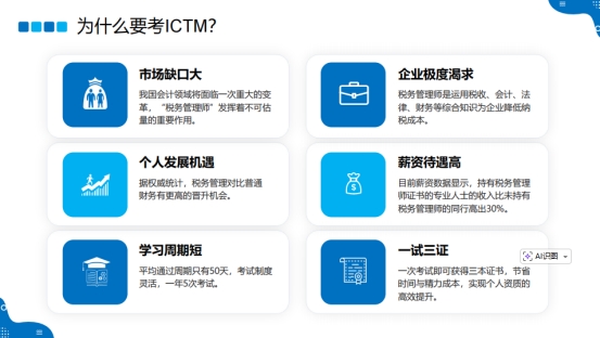 无论你是渴望突破职业天花板的财务从业者,是立志深耕跨境税务领域的职场新人,还是希望提升企业税务管理水平的管理者,国际注册税务管理师ICTM都将成为你职业进阶的“加速器”、通往国际高端财税领域的“通行证”,选择ICTM,解锁专业新高度,拥抱全球新机遇,从此开启财税职业的全新征程!