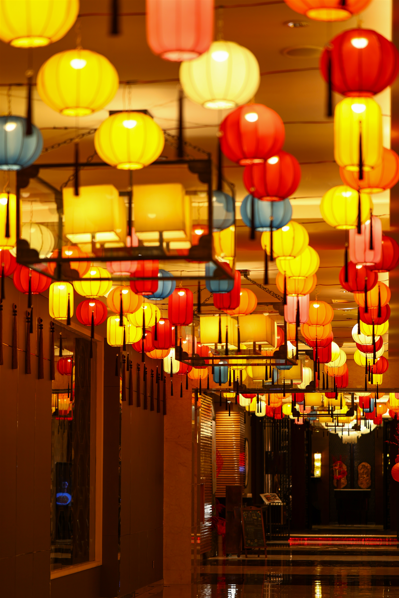 移步至六层,「灯笼廊」惊艳亮相——廊道顶部悬挂起数百盏传统手工花灯,造型各异,流光溢彩,漫步其间,仿佛穿越回古代繁华灯市,感受“火树银花合,星桥铁锁开”的诗意盛景。电梯旁的「福字打卡墙」则以整面福字铺陈,百福具臻,寓意新年百事顺遂、福气盈门,吸引众多宾客在此祈愿留影。此外,酒店各处还精心布置了多个「新春艺术角」,从寓意吉祥的摆件到充满巧思的装饰细节,等待每一位到店宾客去探索与发现。