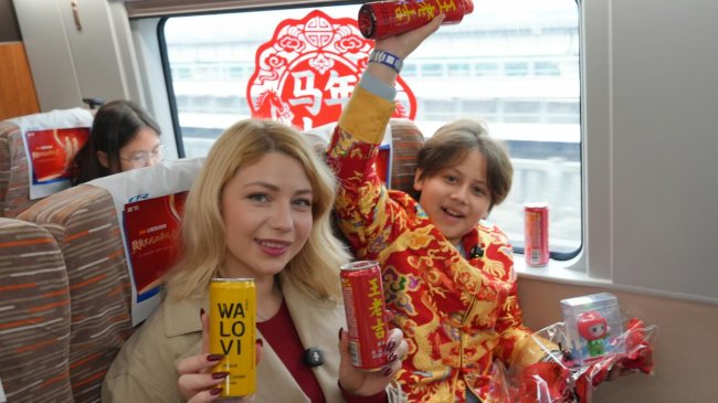 来自乌克兰的“洋媳妇”Valerie则在车上兴奋地分享了自己准备的“春节攻略笔记”,用不太标准的“新年大吉”逗乐了整个车厢,也让这趟高铁成为跨文化交流的温情纽带。她感概道“这趟列车让我感受到了不一样的中国春节热闹与温暖,这是一次真正‘有爱’的旅程。”