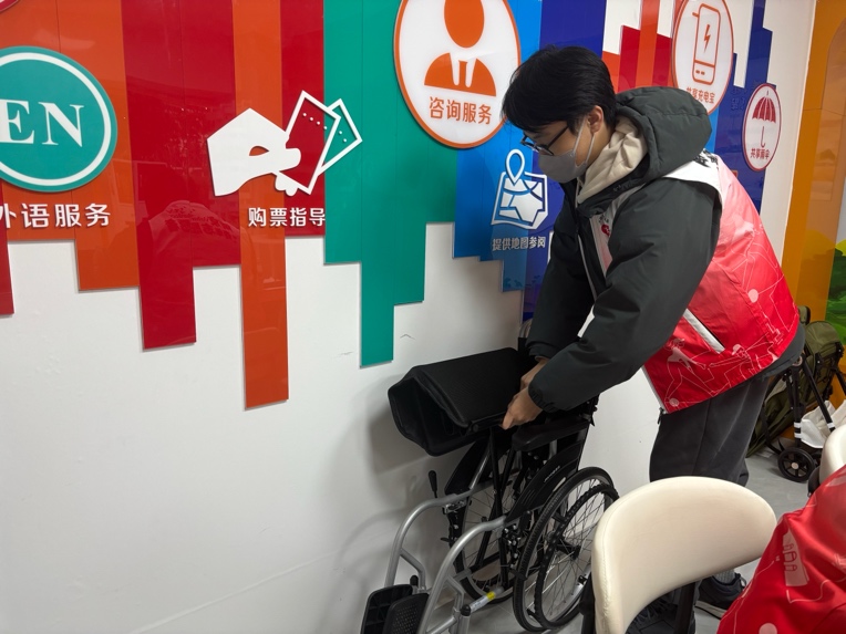 2026年2月16日下午,为响应“青春为中国式现代化挺膺担当”号召,江苏师范大学马克思主义学院学生薛瑞思成在南京站北广场宁+驿站,通过为春运往来旅客提供出行引导、便民设备租借、出行咨询解答、驿站环境维护等全流程志愿服务,为群众平安顺畅出行提供暖心保障。