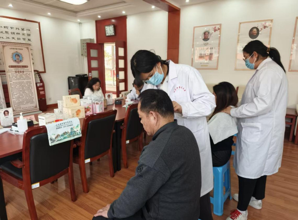 图为团队进行义诊服务 山东中医药大学杨云童 供图