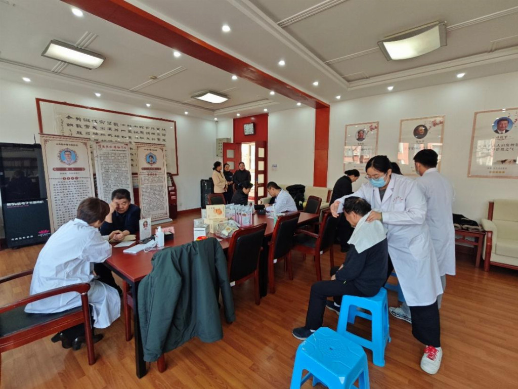 与此同时,养生科普宣讲活动同步开展,队员们围绕老年养生保健、常见慢病管理、冬季防寒保暖、节气养生等核心内容,结合中医药“治未病”理念,通过通俗易懂的语言、生动鲜活的案例,为老干部们讲解中医药养生知识,现场示范八段锦、简易穴位保健操等养生功法,手把手地教老干部们动作要领,讲解每一个动作对应的养生功效,鼓励老干部们坚持锻炼,增强体质。团队还为老干部们发放了中医药养生手册、健康宣教折页以及精心准备的养生茶包,手册和折页内容丰富、图文并茂,涵盖了常见慢病调理、养生食疗方、穴位按摩技巧等实用知识,养生茶包则根据老年群体体质特点搭配,帮助老干部们日常调理身体,真正把健康知识和实用工具送到老干部手中,让老干部们在家就能学习养生知识、开展自我调理。