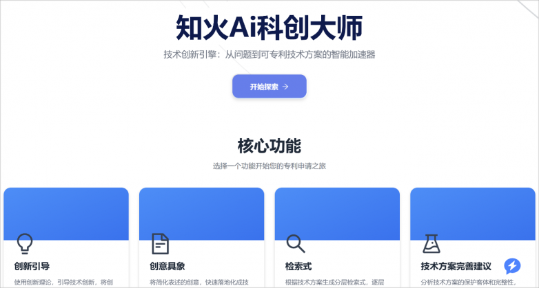 在企业的日常研发中,无数灵感常因无法快速形成严谨方案而搁浅;精心打磨的成果,又可能因“创造性不足”或“撰写不规范”在专利审查中折戟;面对庞大的现有技术库,低效的检索与分析更是吞噬着团队的创新精力。当研发者苦寻一个贯通多学科的得力助手时,“知火AI科创大师”应运而生。它不再是一个简单的工具,而是研发人员专属的“AI创新合伙人”,将技术创新流程推向了“描述即创造”的全新维度。
