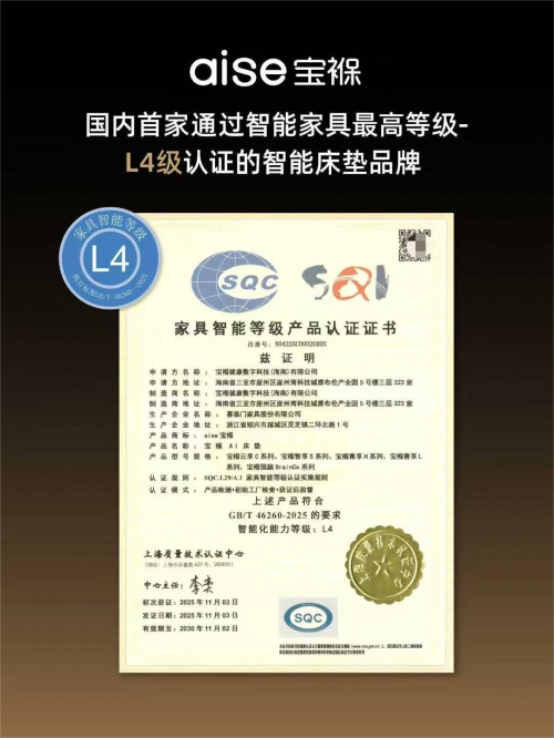 此后,从SmartWave护脊系统到融合脑电波监测的脑机接口AI床垫,再到获得国家标准L4级(最高级)智能认证的产品,它的技术栈清晰地覆盖了从精密传感、智能算法到前沿交互的完整链条。