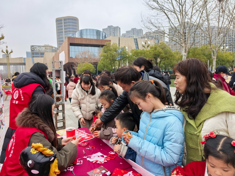推出便民服务,端出“文化大餐”。民俗体验展现场,结绳、剪纸、农民画、面塑等非遗传承体验项目精彩不间断,群众在沉浸式体验中感受中华优秀传统文化的魅力。连续三天的文化惠民演出轮番上演,全民健身大拜年、元宵戏曲专场、惠民综艺专场等活动,动起来、唱起来,让欢乐“不打烊”;“益书来”图书交换、元宵灯谜会、生肖非遗手工展、雨花石主题展等文博场馆系列活动,进一步丰富了当地群众的精神文化生活。值得一提的是,来自六合区横梁街道的2026“苏超”赞助商拟中选企业——食为天卤菜店亮相活动现场,吸引不少市民目光。