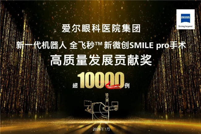 2026年1月10日,“新一代机器人全飞秒新微创手术SMILE pro高质量发展论坛”在上海隆重举办。作为2026“海上之光”眼视光学与视觉科学学术会议等系列活动的重要组成部分,论坛汇聚百余位国内外屈光手术领域权威专家,共探新技术高质量发展路径。会上,爱尔眼科医院集团与宁波爱尔光明眼科医院双双斩获重要奖项,凭借扎实的临床成效与技术引领力,赢得行业广泛认可。